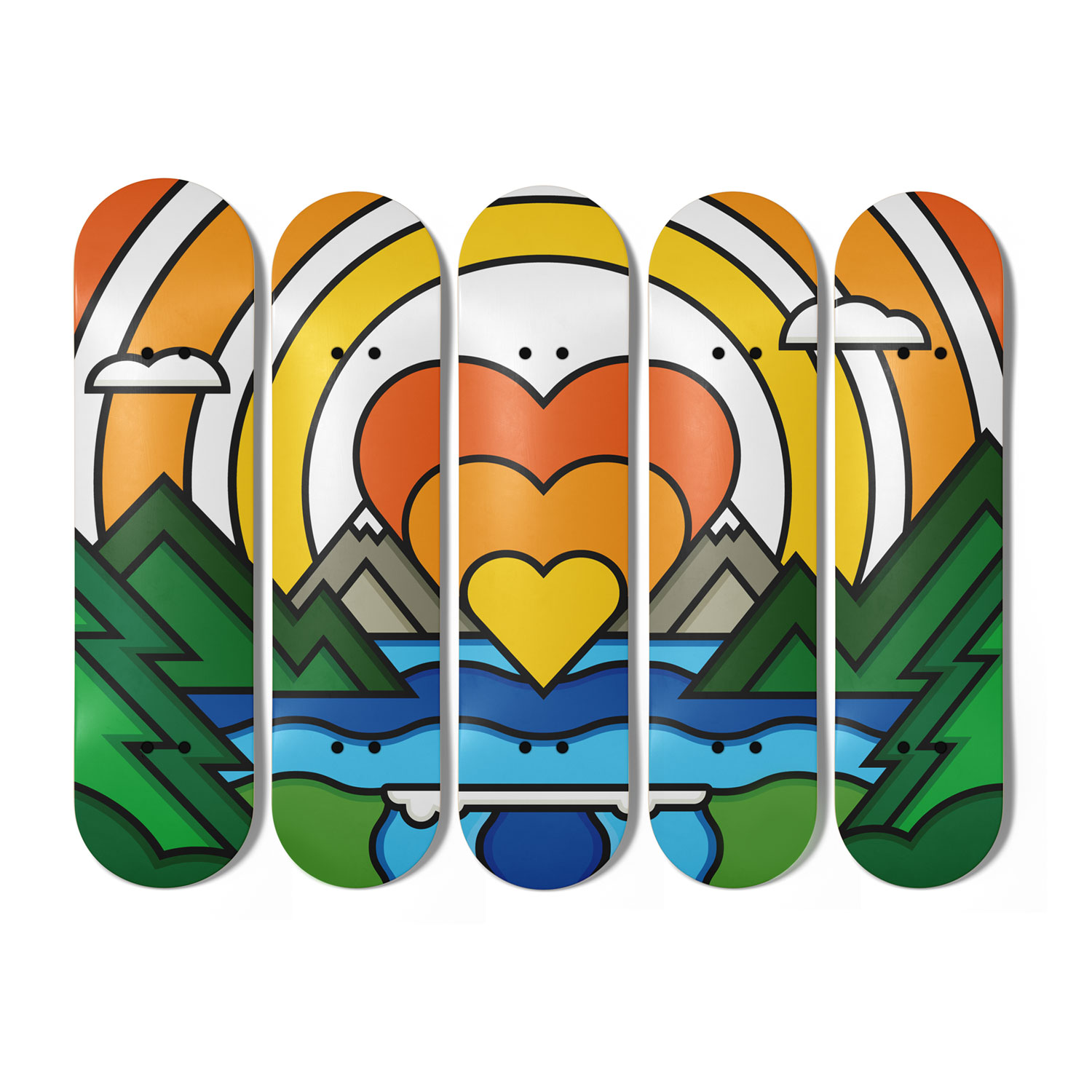 Self reflection, positivity, and love. All things that came to mind as this was created. Skateboarding has always been a way for me to be alone and reflect on life. It helps me find answers to important questions. I usually focus on downhill skateboarding which in turn helps me discover a lot of beautiful landscapes. This piece is a representation of my experience with meditation, skateboarding, and a close connection with nature.